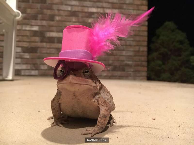 這隻蟾蜍每天晚上都會跑到他家的門廊,所以他決定做「時尚迷你帽」給牠百變穿搭!