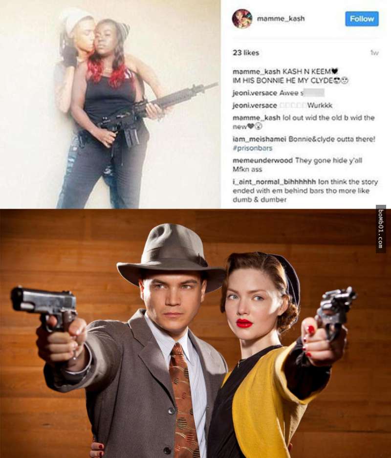 2017年3月2日,美國一對情侶竟模仿美國歷史上最著名的「雌雄大盜邦妮和克萊德」光天化日之下槍殺一名19歲少年,甚至拍成影片上傳到Instagram上炫耀!