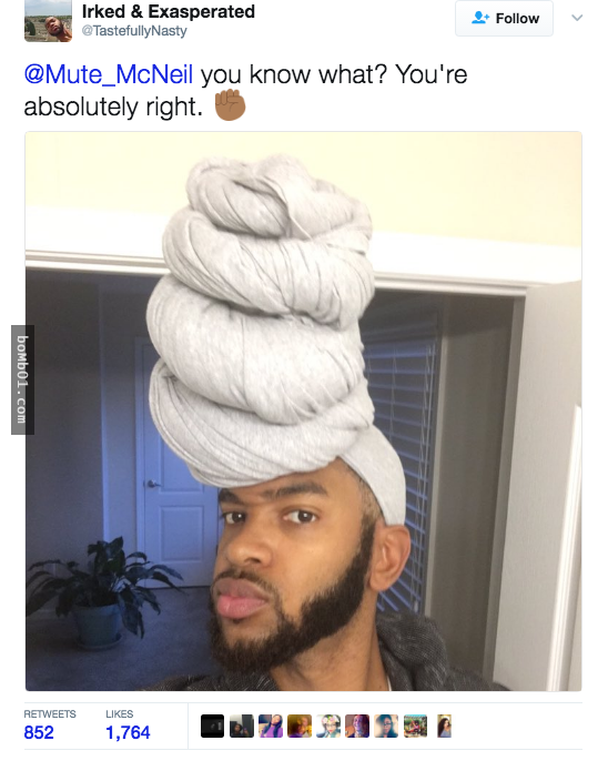 許多網友希望McNeil將他綁頭巾的方法公布在Youtube,因為他綁得太好了。許多女生也表示怎麼男生綁頭巾的手法竟然會比她們厲害,就算看到照片也都無法生氣了。其實McNeil真的蠻聰明的,比起直接的質問吵架,用這種幽默的方法來進行「報復」,既能夠達到抱怨的效果也不會傷感情,真是太高明了!