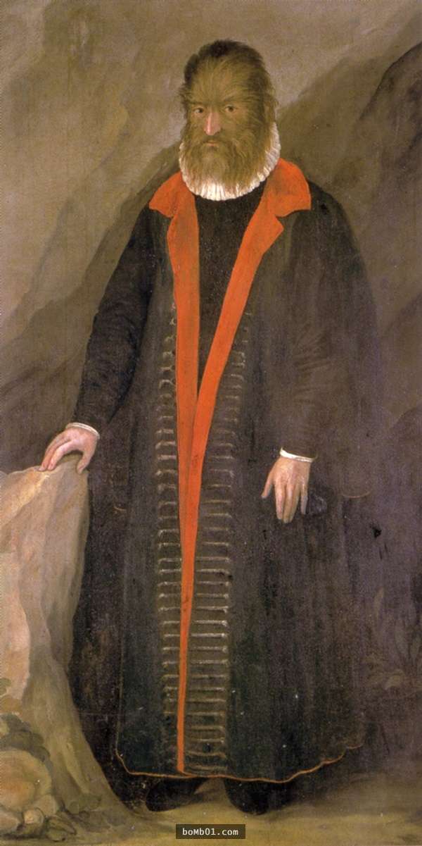 ▼在佩德羅年紀還小的時候,他就被進貢給了法國國王亨利二世,並當作「特別的寵物」撫養。等到亨利二世過世後,皇后凱薩琳突發奇想,想知道這種「毛怪」能不能跟人類交配,並生下更多毛怪,便指派了一名漂亮的婢女跟佩德羅交合,還下令他們成婚,很諷刺地,這位婢女恰巧也叫做凱薩琳。