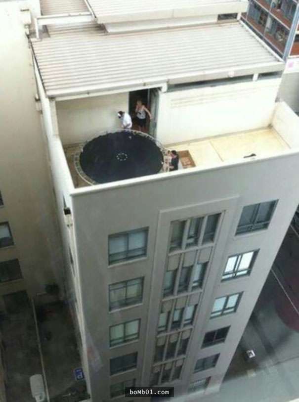▼在這裡玩彈翻床,這是變相跳樓吧。