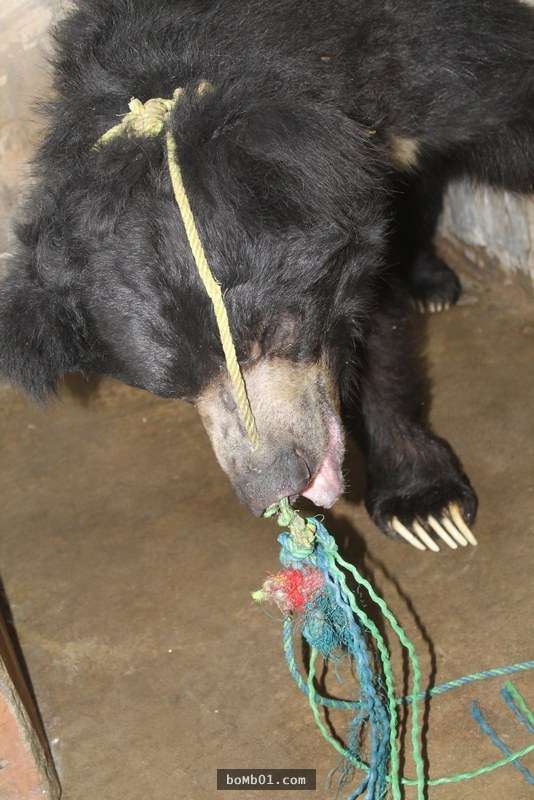 ▼救援組織的公關經理麗絲(Lis Key)表示:「當黑熊還是小寶寶的時候,這些狩獵者就會用燒紅的針頭穿過牠的鼻尖,然後再用一根繩索穿過鼻尖上的洞,藉由拉扯繩索,逼迫牠們做『跳舞』。」