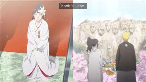 ▼雛田在婚禮上,穿了一身日式婚禮和服,在搭配櫻花樹的背景簡直就是美到不行,兩人手牽手往婚禮會場邁進也是難得一見的放閃情節。
