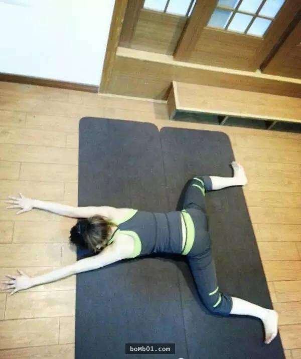 功效:放鬆髖關節,減輕背部壓力,緩解下背部的疼痛;拉伸大腿外側,擠壓大腿內側,刺激肝經,腎經,膽經。
