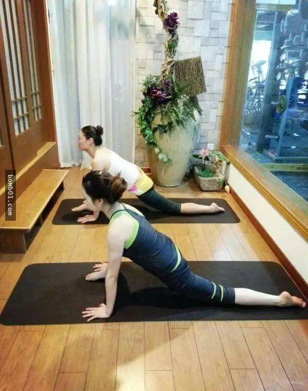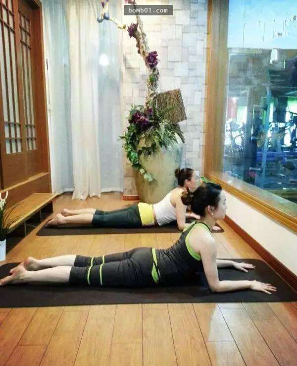 做法:吸氣,抬頭,呼氣,順勢向前俯伸至自己的極限,兩前臂觸地,眼睛看向正前方。