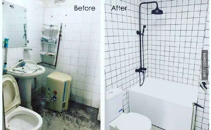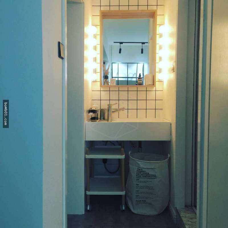 ▼浴室當然也是改造重點之一,再貼上了極簡的黑白小磁磚後,整間浴室嶄新又明亮。