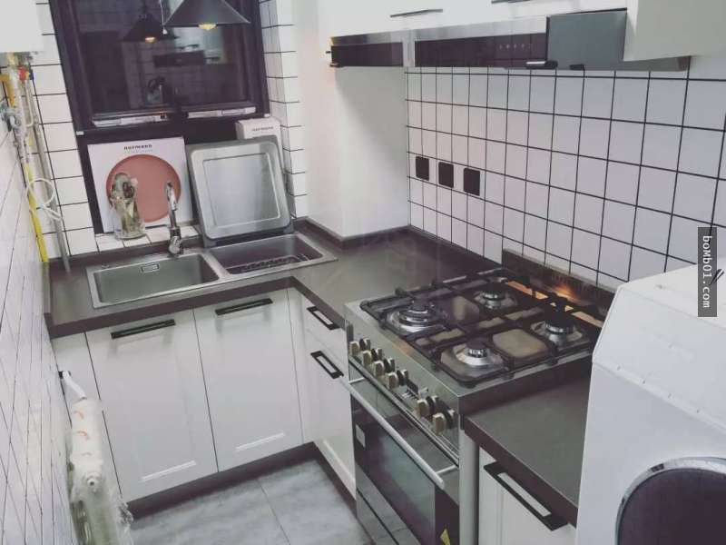 ▼廚房也全部重新貼上黑白瓷磚,Allen笑言說:「差點逼死裝潢師傅。」