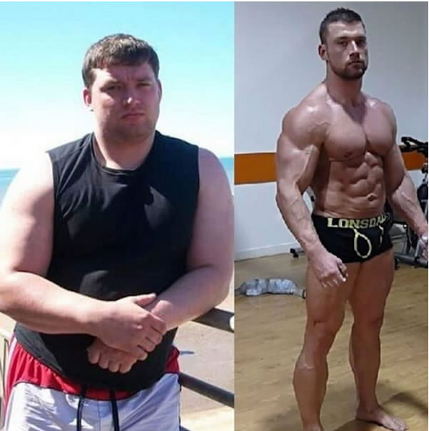 ▼在健身教練的幫助下,他學著控制飲食,循序漸進健身,再也不吃那些高熱量的食物,菜單變成了魚、雞肉、蛋白等等。短短一年時間,他減去了41kg
