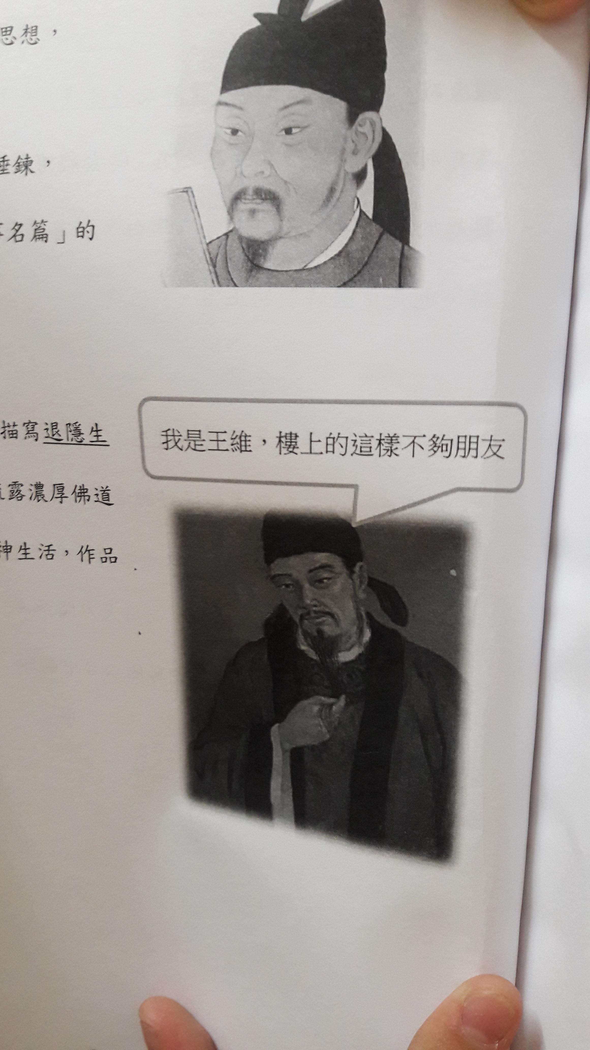 ▼這名網友的妹妹從先修班回來後很開心,神秘兮兮地對她說:「姐,你看我們的講義!」她以為妹妹要自己幫忙檢查錯誤,就拿過來翻看,沒想到一下子打開了新世界的大門。只見熟悉的李白畫像上多了對話框,還寫著:「我是李白,不要在我臉上畫畫。」