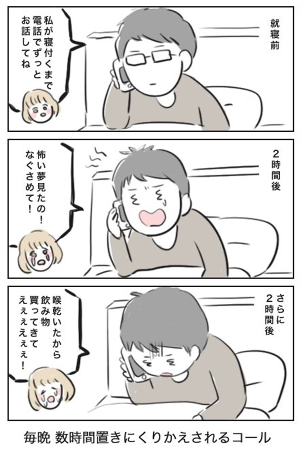 (兩個小時後):「我做噩夢了,快安慰我!」