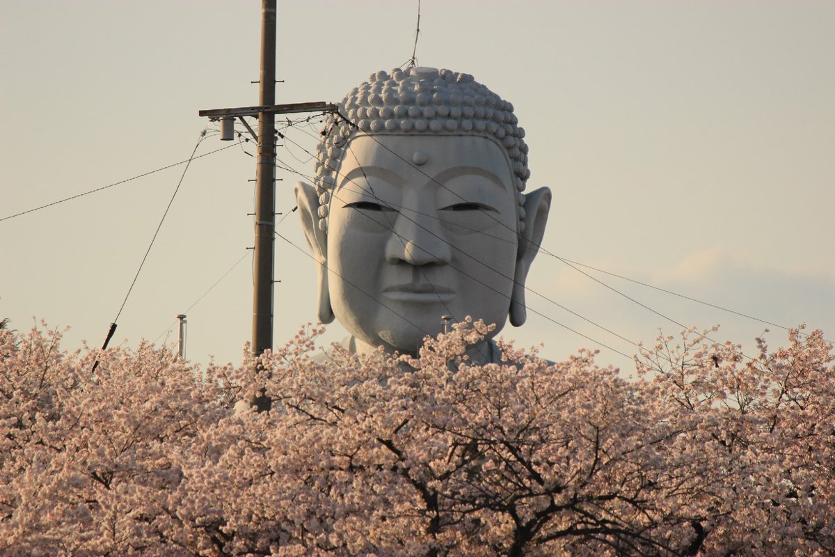 2017年04月17日櫻花盛開的時節,不出去看一下好像春天就白過了。最近日本愛知縣布袋大佛附近的櫻花已經開滿,下面這名網友就跑去欣賞,沒想到抬頭看不遠處的大佛時,他卻發現了格外有趣的畫面……