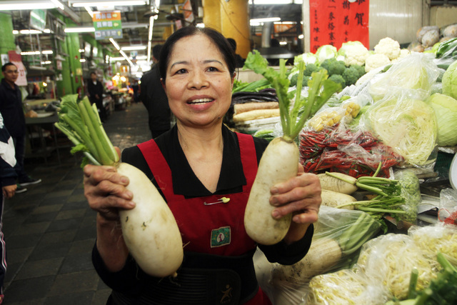 ▼經歷過這些事後,陳樹菊更加努力經營自己的菜攤。每天凌晨兩三點鐘,她就趕去進貨,挑選出最新鮮的蔬菜,五點前必須回自己的攤位撿菜、打包,趕在第一波客人到來之前整理完。