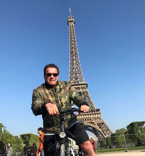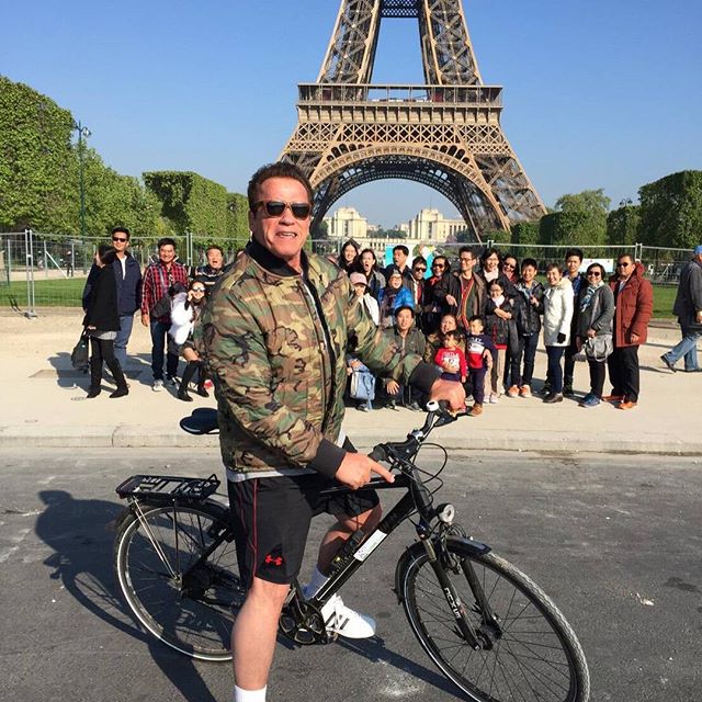 ▼阿諾也分享了在艾菲爾鐵塔前的照片。原來那天他在巴黎騎行,看到遊客們合照忍不住小小惡搞了一下,這滿滿的童心都要溢出來了。