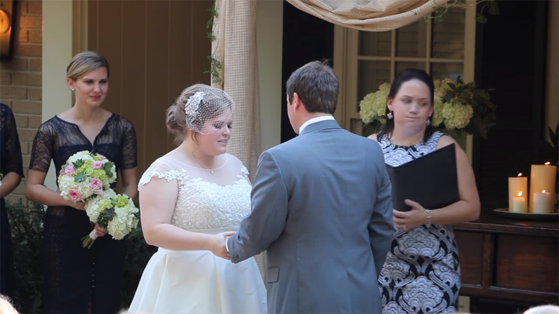 ▼當時,新娘正在對新郎念著感人的誓婚詞,說:「我承諾會成為你最忠誠的守護者,並成為你最好的朋友。」但就在這時候,最右邊的證婚人竟然突然吐了…