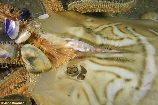 ▼除了犁頭鰩,潛水員還發現了一些被傷害的魟魚,牠們的鰭和尾巴被砍了下來,樣子非常淒慘。