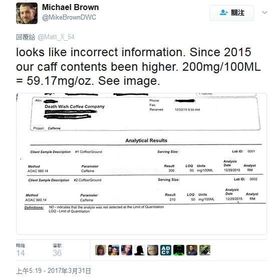 ▼「死亡願望」的官方數據中,咖啡因含量為每盎司54毫克,比「黑色失眠」要低一些。不過研發人表示,那已經是老黃曆了,他們早就升級啦,從2015年開始,「死亡願望」的咖啡因含量就提升到了每盎司58.5毫克。
