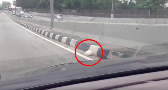 2017年05月13日一般來說,流浪動物不會跑到高速公路上,那裡沒有水和食物,全都是高速移動的汽車。但不久前,馬來西亞男子Masz Masuri載兒子出門時卻在安全島旁看到了一隻可憐兮兮的小白貓。
