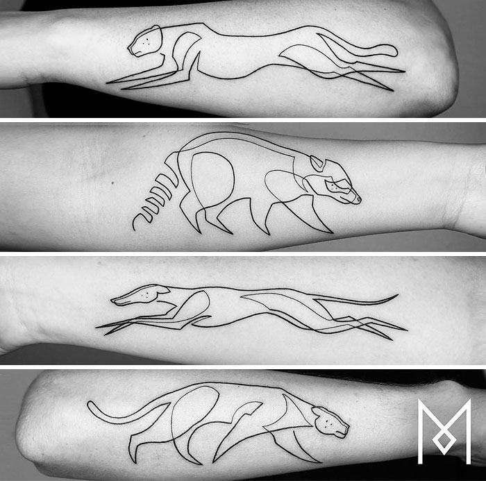 2017年05月17日一條線可以畫出怎樣的圖案?如果只用一條線來刺青的話會是怎樣的呢?來自柏林的刺青藝術家Mo Ganji採用了一種創新又大膽的刺青方式,用最少的線條描繪出最迷人的刺青。