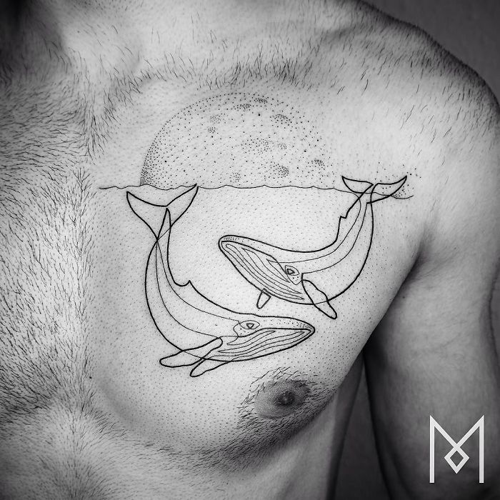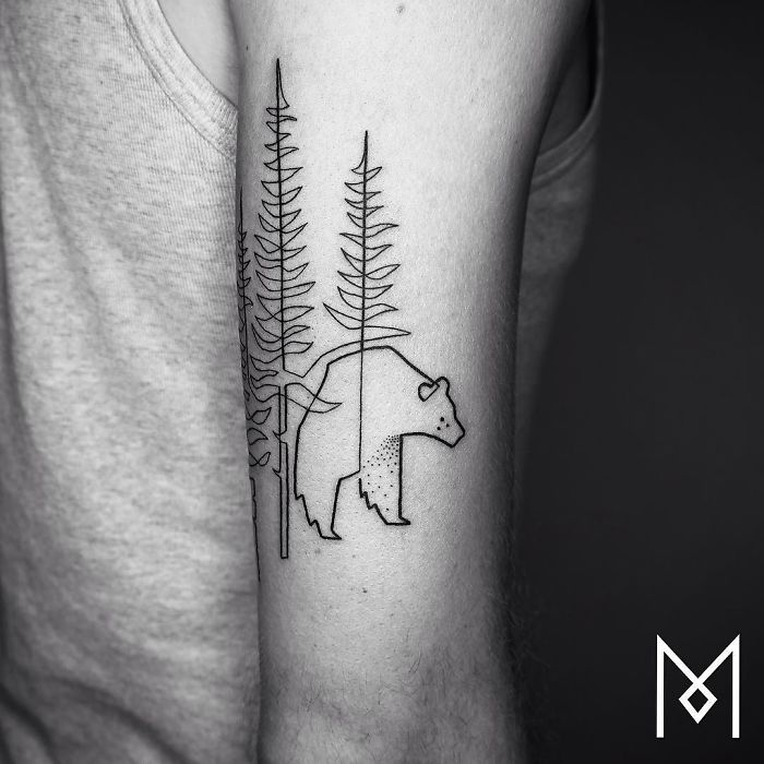 用最少的線條畫出這樣的圖案,裡面的複雜性和構圖設計簡直讓人不敢相信。這種極簡風的刺青確實比一般的刺青更加容易吸引一般人,讓人忍不住也想跑去刺一個了!