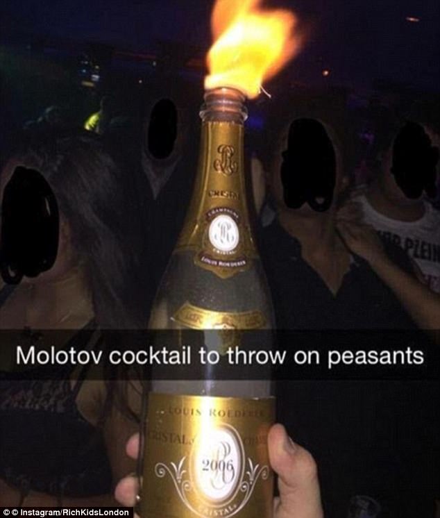 ▼還有一名土豪點燃超貴的「路易王妃」香檳,並配文說:「燃燒彈向鄉巴佬丟去。」