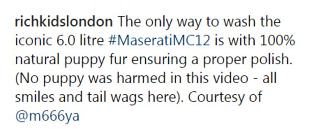 怪不得不少人批評說:「有錢也買不到社會階級」。這些富二代們炫富的方式太誇張了,用小狗擦車,這真的一點也不好笑!