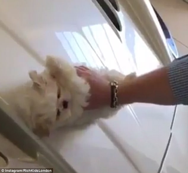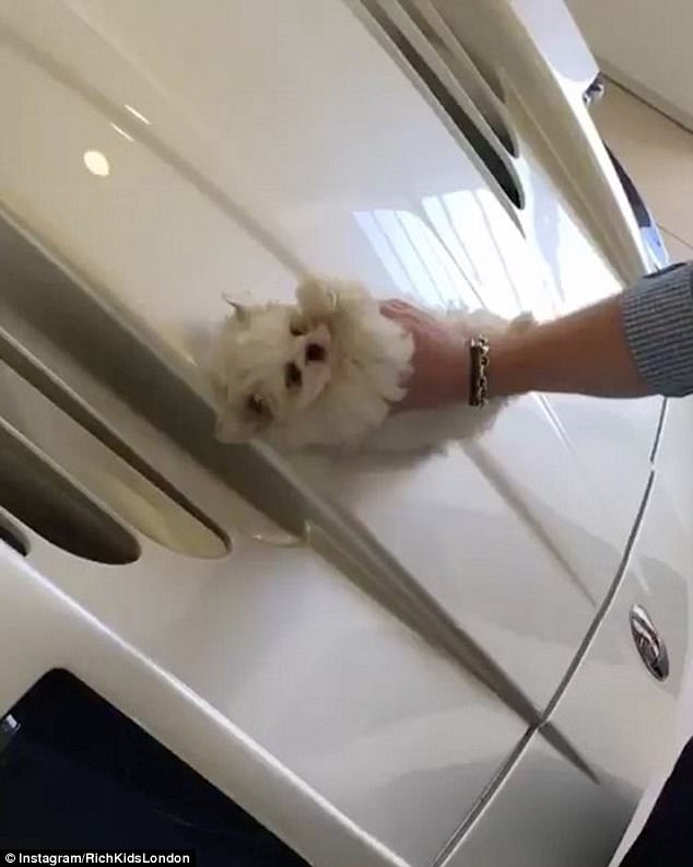 超白癡富二代自以為很幽默,他竟然把活的小狗當作名貴超跑的「拋光」工具!
