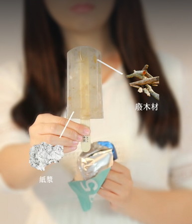 ▼這些冰棒就是他們的畢展作品「100%純污水製冰所」。洪亦辰受訪時指出,因為政府每次在宣導愛護水資源時,大多是走馬看花,觀眾看完後並不會留下深刻印象;才會利用冰棒這種貼近生活的物品,來喚起大眾對水資源污染的重視。