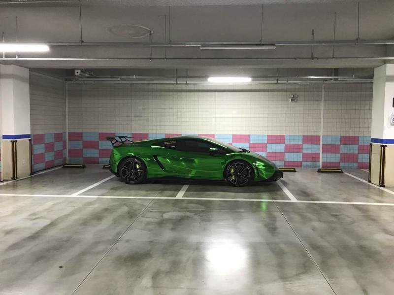 2017年05月25日有車的人越來越多,因為停車問題產生的矛盾也多了起來。下面這名韓國網友就在一座大廈的地下停車場看到了超級沒公德的一幕,一台綠色的藍寶堅尼囂張橫停,一台車佔了4個停車格。