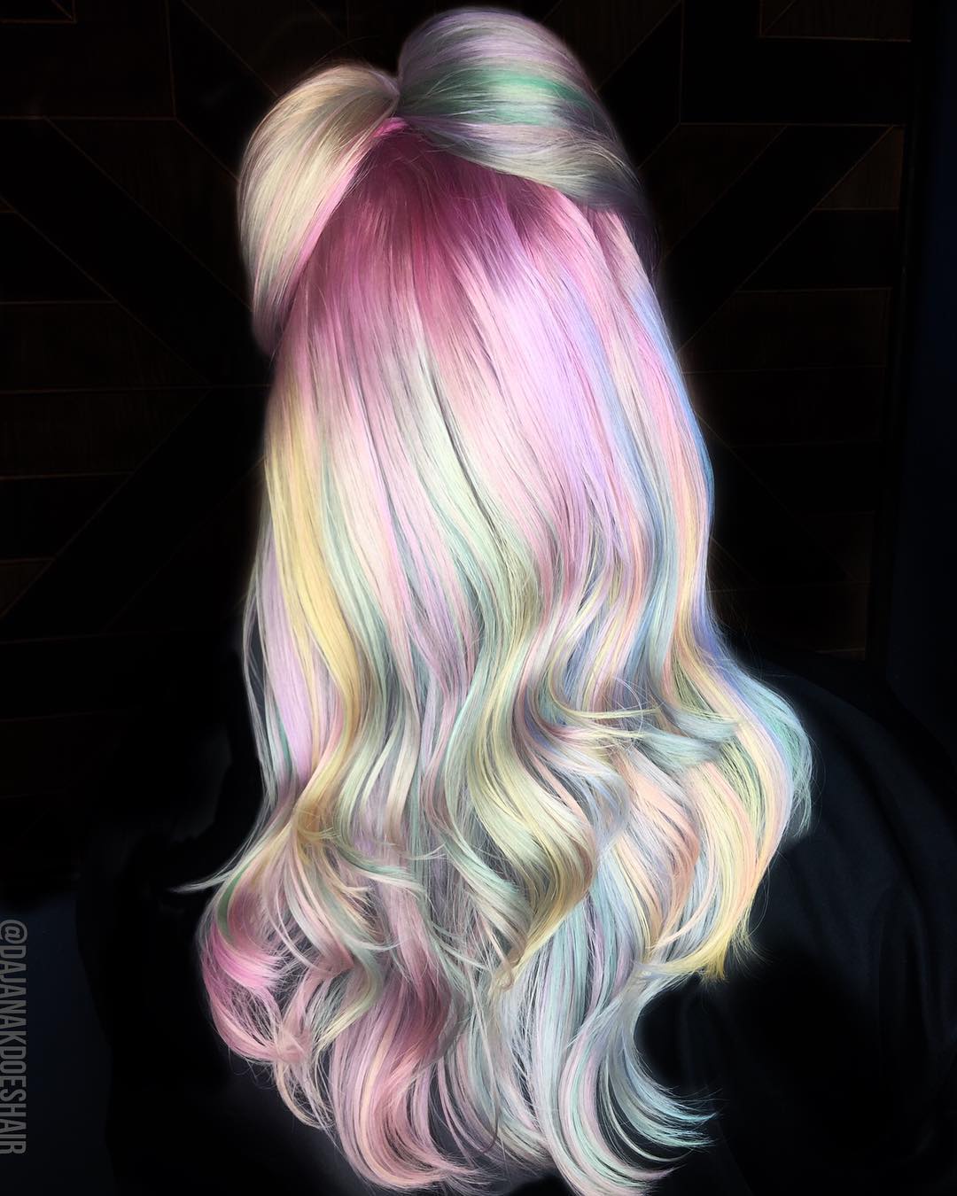 ▼淡淡的糖果色在頭髮上跳躍,如同陽光下隱約的彩虹。
