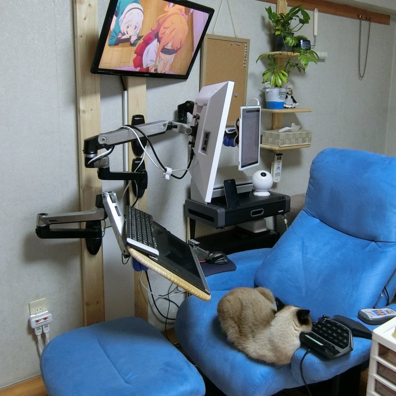 ▼他在兩個月前於自己的推特上公布了自己改造的工作桌,舒服的椅子配上電腦熒幕,讓他可以用最舒服的坐姿長時間作畫。