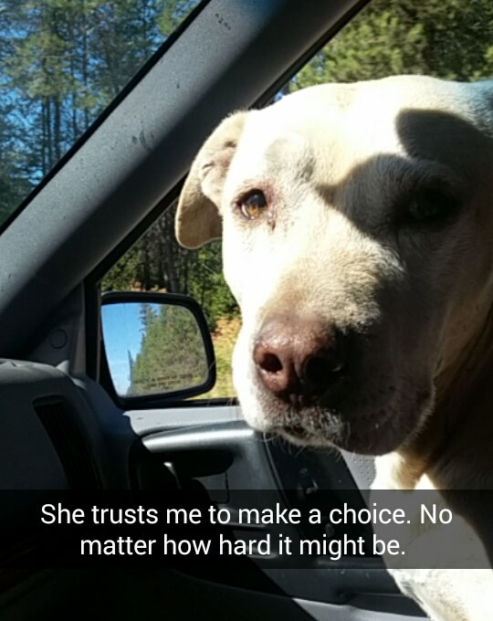 ▼執行安樂死當天,Kyle決定給Hannah一個美好的回憶。她開車載牠出門兜風,這是Hannah以前最愛的活動。不知道Hannah是否明白離別的時刻即將來臨,一路上都乖乖巧巧的,低頭的模樣讓人很心疼。