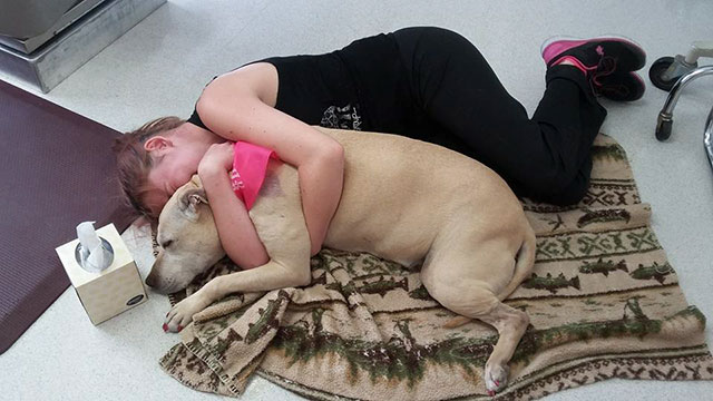 ▼生命的最後一刻,Kyle將Hannah抱在懷裡,讓牠安心離開這個世界。這一刻獸醫院中的醫生與護士都被感動了,忍不住流下了眼淚。