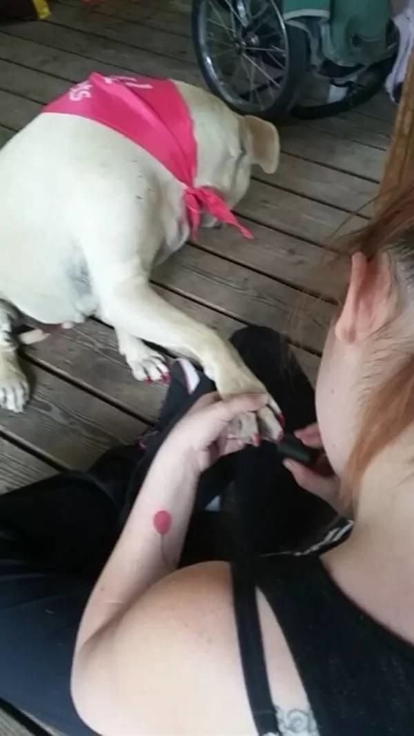 ▼Kyle帶Hannah做了SPA,希望牠能放鬆一下,還在牠身上染了美麗的心,讓牠知道家人多愛牠。