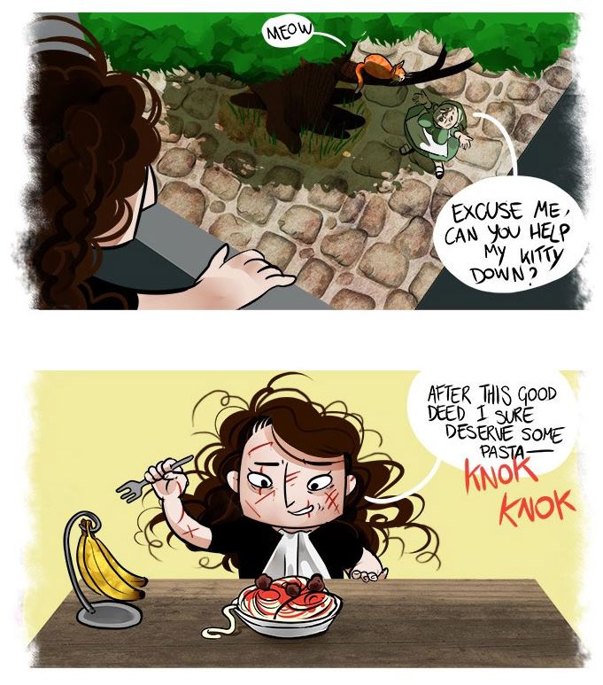 (回到餐桌)「做了這麼大的善事後,我確定該犒賞自己一些義大利麵…」