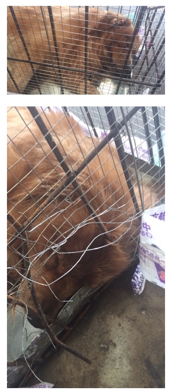 ▼左小姐說因為豆豆重達35公斤,所以當初就使用托運商建議的大鐵籠,避免豆豆中途跑出來,也確認了貨艙是氧氣艙。沒想到照片卻顯示豆豆躺在鐵籠中,靠近嘴巴處的鐵絲全被咬斷,看起來生前經過一番掙扎,讓她心痛:「麻麻從來沒想過你會以這種方式跟我告別,我不知道在你離開前是經歷怎樣的痛苦,以至於你面前的幾根鋼絲都被咬斷,對不起,麻麻沒照顧好你!」