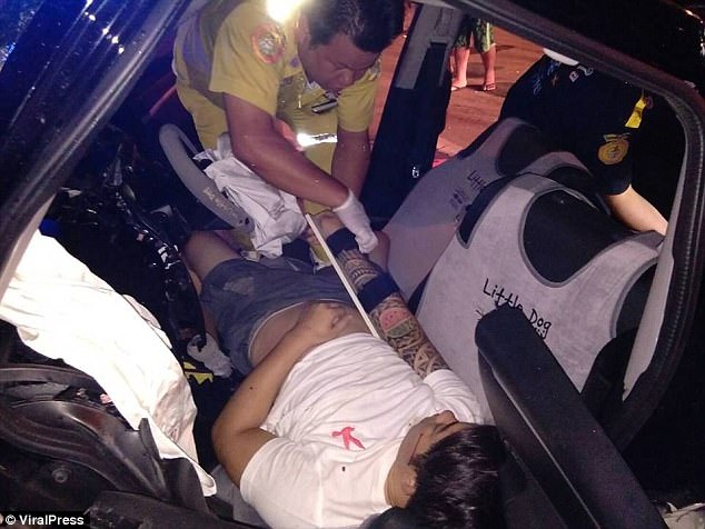 ▼當時車內一共有4個人,除了司機,還有一名女乘客坐在副駕駛的位置。John與另外一名女子在後座。車禍發生後消防人員迅速趕到現場,將裡面的人救了出來。這時候大家才發現,John半裸,與他坐在後座的女子全裸,兩人疑似在「車震」,沒有繫安全帶。