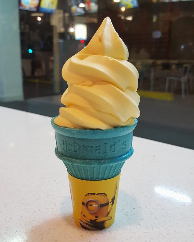 ▼看看這款小小兵冰淇淋,黃色與藍色的經典搭配非常萌。現在社群網站上已經有了#mcdgoesyellow標籤,潮人們都吃過啦。