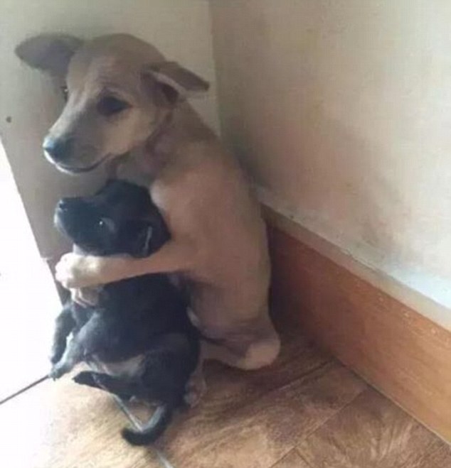 2017年06月24日流浪狗在街頭生存不易,中國大陸的一處城鎮上,就有人拍到縮在牆角的兩隻小狗互相擁抱,牠們似乎對於自身處境非常無助,飽受心酸的眼神令人無比心疼。