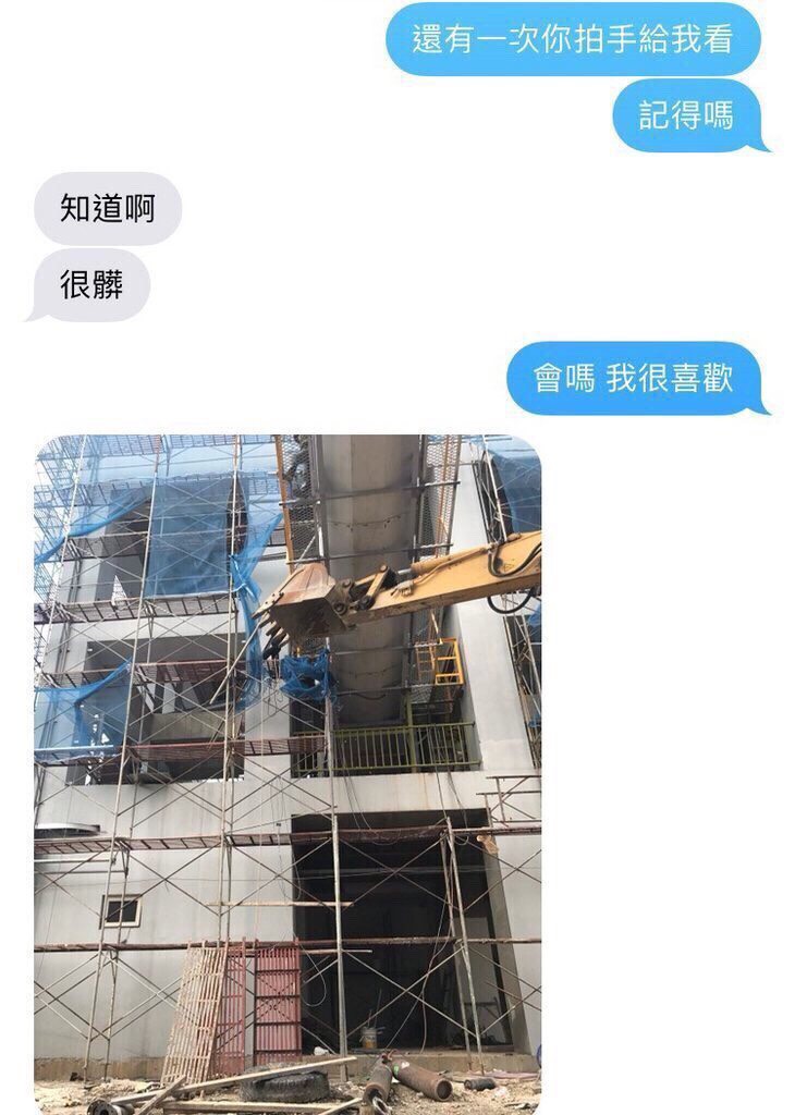 ▼「我都特別開心,代表他一有空就想著要趕快找我呀!」她說,男友有時也會補上他正在工作的照片,每一張他隨手拍的上班照偷特別讓她想收藏。有次男友說:「手好髒好黑。」她甜回:「這是很努力的一雙手,我很驕傲。」