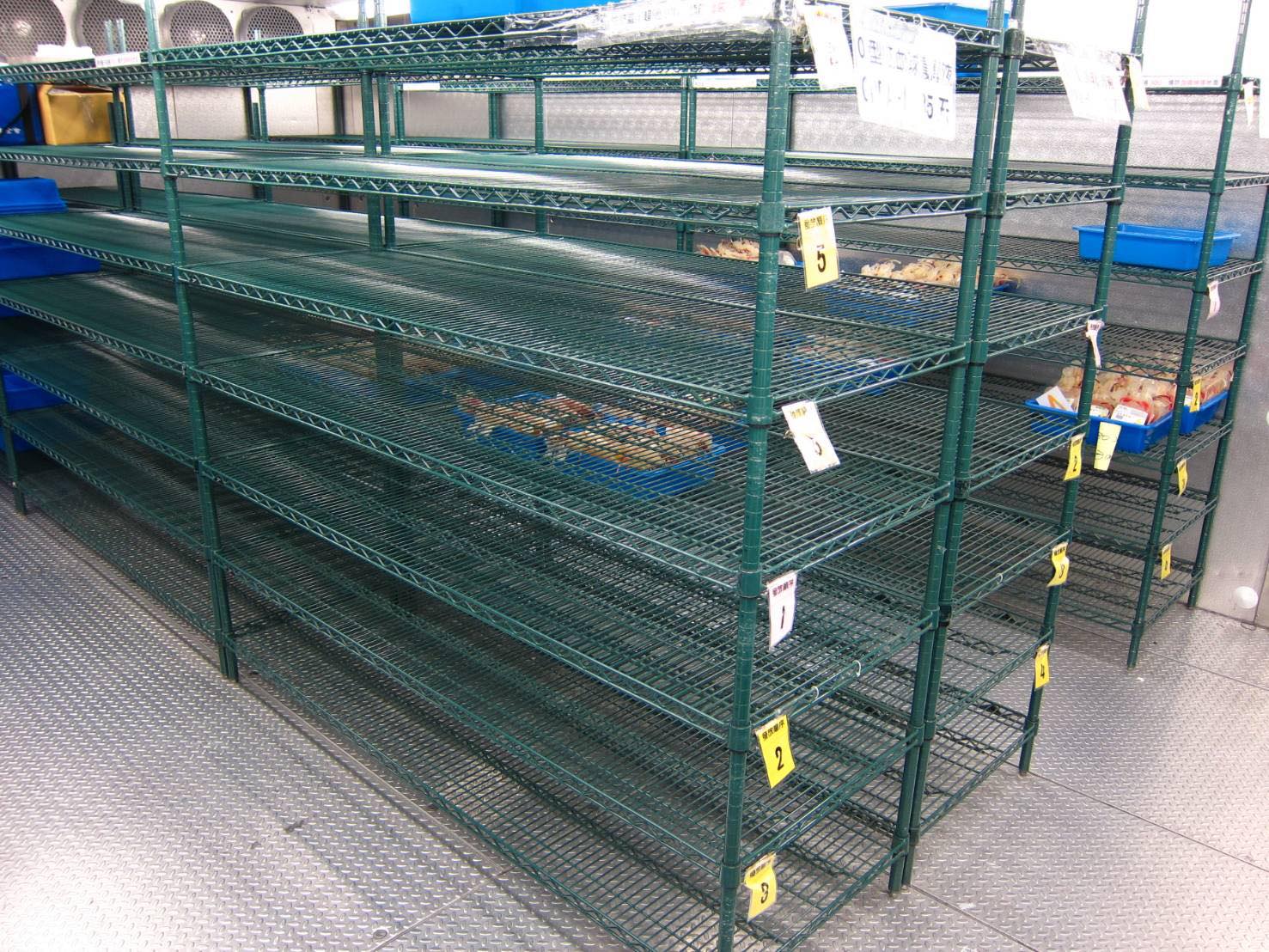▼偌大的架子上,只有零零星星的一些庫存,大部分位子都是空的。
