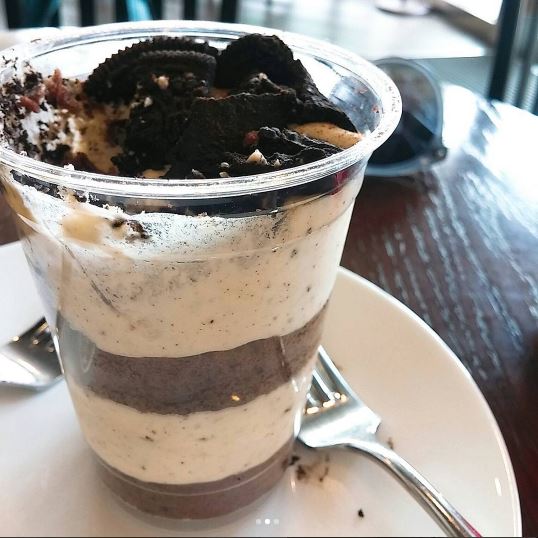 ▼平時這些透明杯子只用來裝飲料,現在裡面卻放了蛋糕。甜點不一定非要坐著吃,邊走邊吃也很棒。