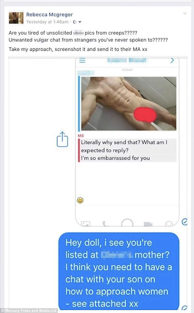 ▼每天被人這樣騷擾,脾氣再好的人也會爆發。Rebecca忍不住了,決定使出必殺技,讓他們再也不敢這樣做。深思一番後,她……把寄來的裸照寄給了對方的媽媽。果然,向媽媽告狀這一招才是終極絕殺,從幼稚園到現在都適用,而且屢試不爽,成功率高達98%。
