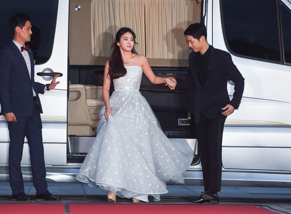 直前喬妹穿長裙參加頒獎典禮走紅毯,宋仲基一路都握著她的手,上台後還會輕輕扶著,擔心她不小心踩到裙襬跌倒。上台後他一直站在喬妹身後盯著裙襬,防止意外發生。