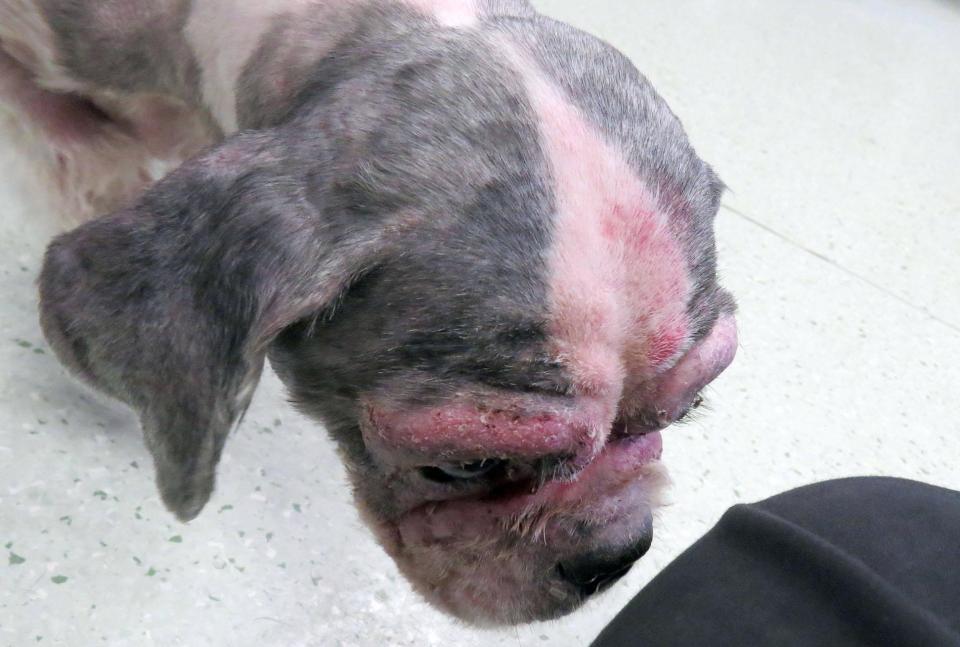 ▼志工們給狗狗取名為「Soldier」,把牠送到獸醫那裡治療。牠的皮膚感染嚴重,只洗澡遠遠不夠,必須把毛全都剃掉才行。獸醫不得不將牠麻醉,這才把牠的「髒大衣」脫下來。牠在獸醫院待了3天,確定脫離危險後才逐漸開始接受常規治療。