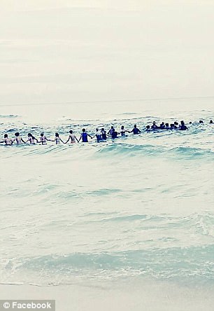 ▼岸上的民眾非常著急,當時Jessica Simmons與丈夫也在那裡度假,她聽說這件事後連忙拿起衝浪板,向Roberta和家人游過去。當時她沒想到自己的安危,滿腦子想的都是:「這些人今天不會淹死,不能發生這種事,我們一定要把他們救出來!」