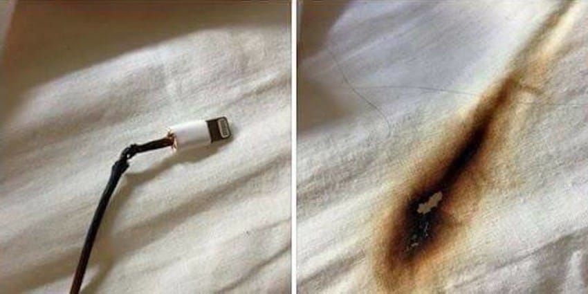 他在睡覺時很喜歡把手機放到枕頭下充電一整夜,結果半夜突然聞到燒焦味連消防局都發出警告!