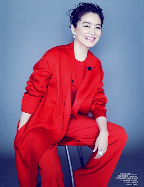 ▼60歲時,林青霞受雜誌之邀,以大紅的西裝褲拍了一系列照片,可以看出歲月根本為她停駐了!