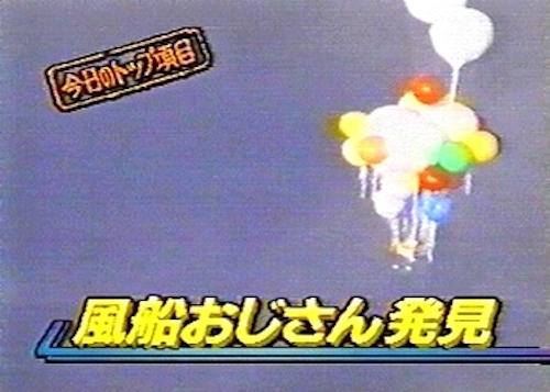 ▼電視台還直播了他飛行的過程,途中他一度飛得太高,不得不放掉一顆氦氣球,之後又差點飛過羽田機場,險些撞上飛機。最後他撞上了一處民宅的屋頂,也毀損了對方的屋瓦和電視天線。
