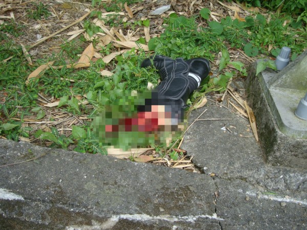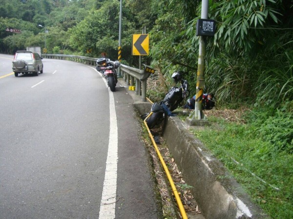 ▼7月22日時,41歲的重機騎士陳男與重機車隊從埔里往日月潭行駛,在經過九龍路口前方有一個60度的大轉彎時,陳男疑因車速過快煞車不及,衝進公路旁的水溝內,因為重機未熄火,導致人和車一起推行磨擦。