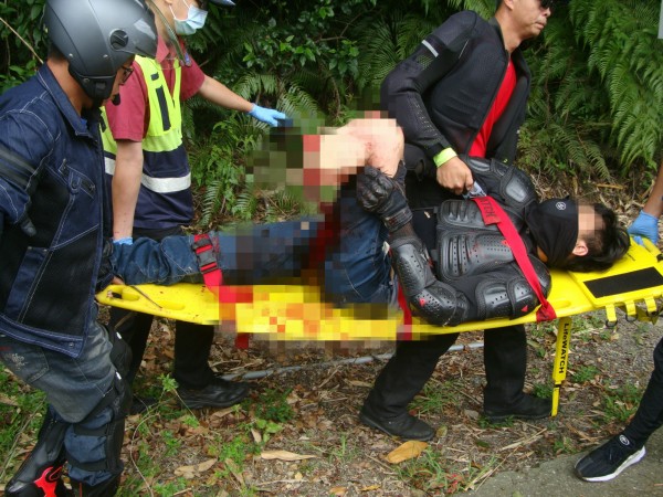重機騎士在日月潭「車速過快」結果衝入路旁邊溝,小腿整個被磨斷的畫面讓人不敢看!